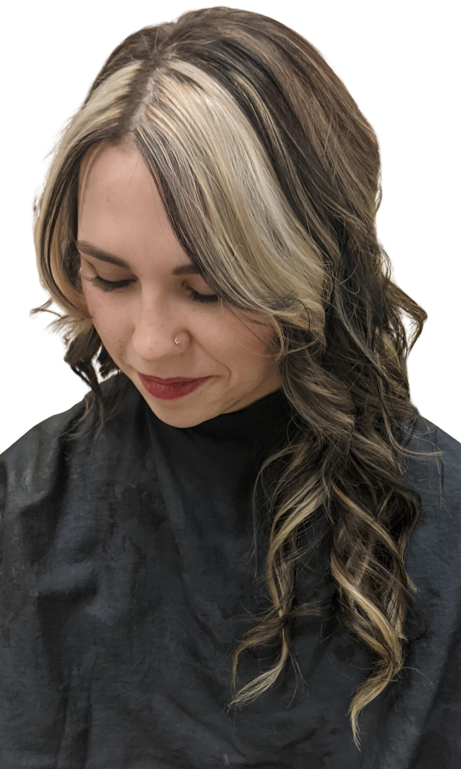 Balayage includes painted natural grow out appearance.